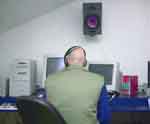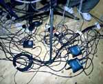 Playing out to a global audience. using a bunch of cables, computers and coffee